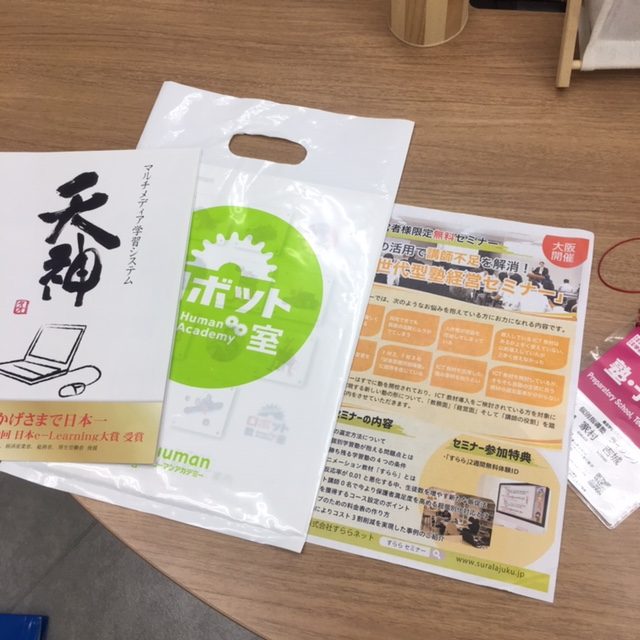 結果、あちこちでプレゼンがあったのですが何かを新たに導入するという事にはならず、導入しているすららネットさん、ヒューマンアカデミーさん、天神のタオさんにご挨拶に行っただけの感じになりました。